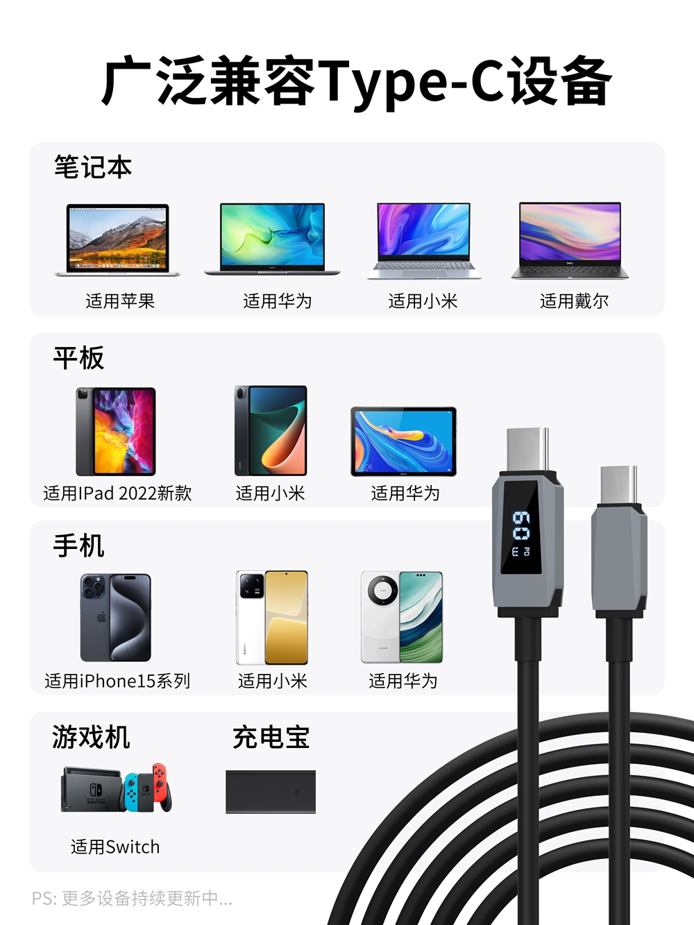 适用Iphone苹果安卓双Type-c数据线平板快充PD60W手机充电线