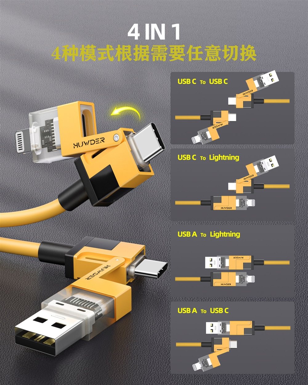 鸿达工厂四合一数据线二拖二PD快充100W两用typec转lighting双USB